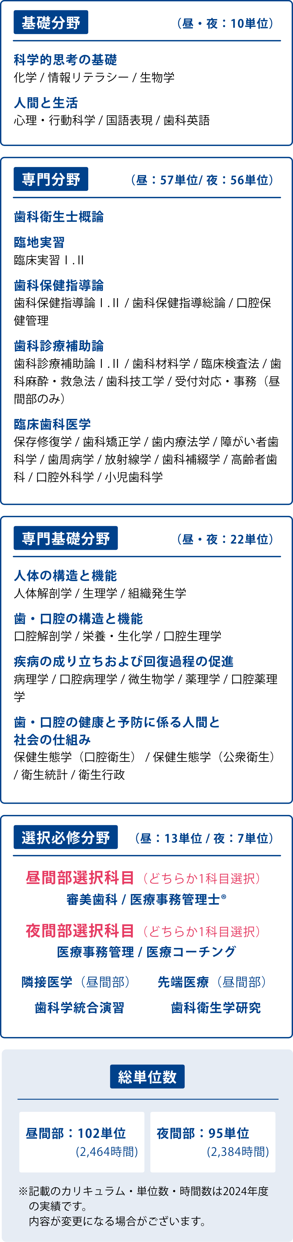 選択授業では、歯科医療の現場で役立つ知識が得られるプラスアルファの授業をご用意。昼間部では、口元の美しさと健康を追求する「審美歯科」の授業が選べます!